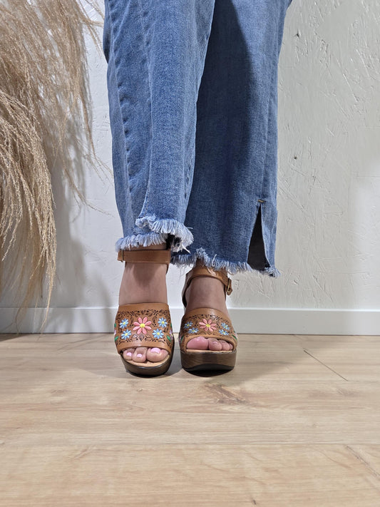 Florencia Mexican low heel sandals, embroidered sandals